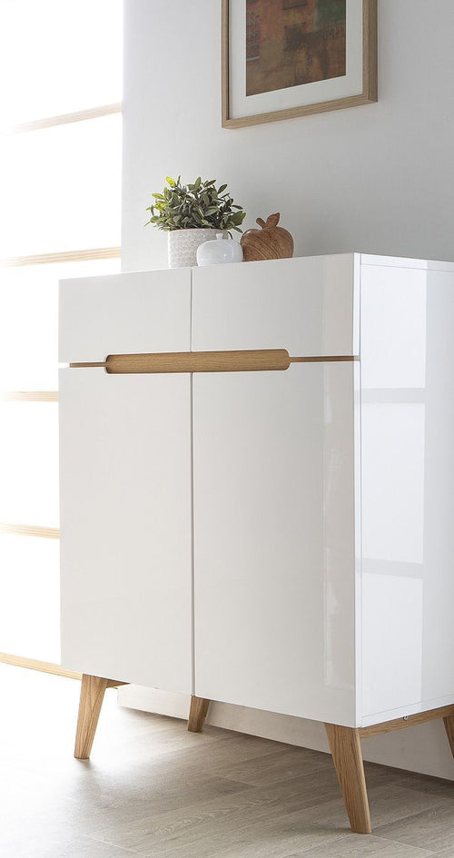 طقم غرفة نوم كامل | أبيض لامع من الأكريليك والخشب | ٥ قطع | غرفة نوم ١ -